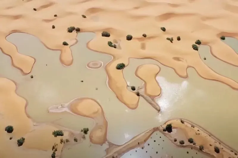Estas lluvias, catalogadas por meteorólogos como una tormenta extratropical, han generado lagunas de agua entre las dunas de arena y palmeras, transformando el paisaje desértico en un oasis temporal. Los satélites de la NASA captaron imágenes del agua fluyendo hacia el lago Iriqui, un lecho lacustre que había permanecido seco durante cinco décadas.