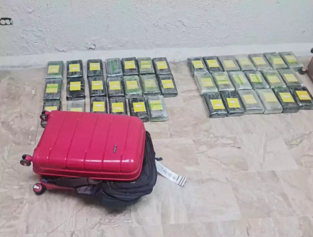 En presencia de un fiscal, se procedió a abrir el equipaje, ocupando en dos maletas, cuatro mochilas en cuyo interior se confiscaron un total de 39 paquetes de la sustancia, con un peso preliminar de 41 kilogramos.