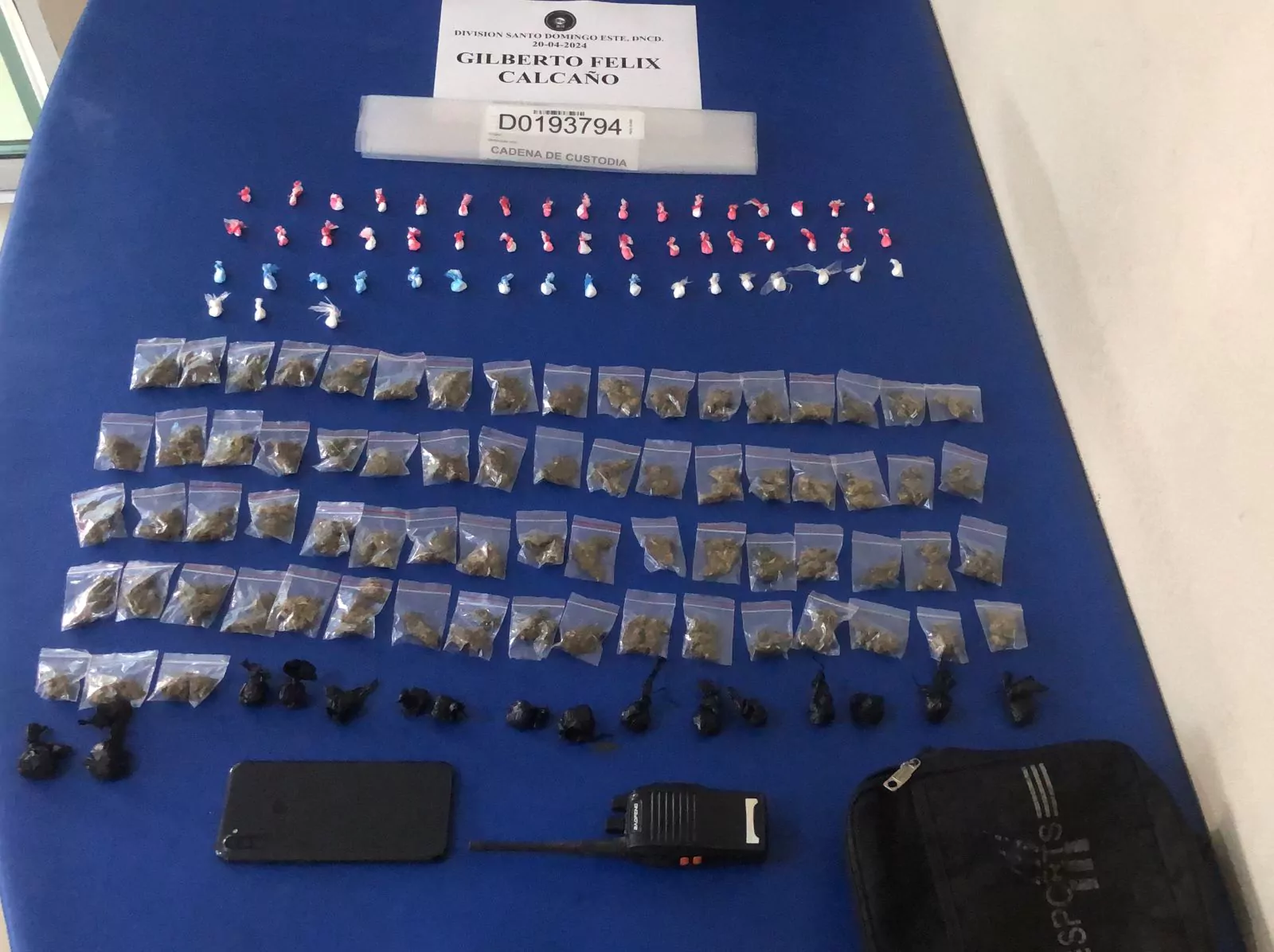 También se confiscaron 90 radios de comunicación, 05 chalecos antibalas, 253 balanzas, tijeras, mochilas, 04 máquinas tragamonedas RD $4, 782, 724 pesos dominicanos, US $1, 563 dólares estadounidenses y otras evidencias.