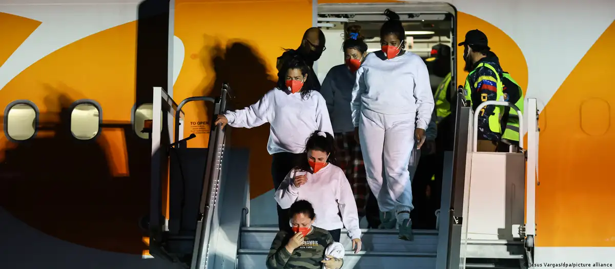 Mientras que una fuente del Ministerio de Transporte venezolano indicó a EFE que el avión de la estadounidense Eastern Airlines, procedente de Arizona (EE.UU.), aterrizó en el Aeropuerto Internacional Simón Bolívar de Maiquetía, que sirve a Caracas, con 142 hombres y 26 mujeres, además de dos adolescentes y cinco niños.