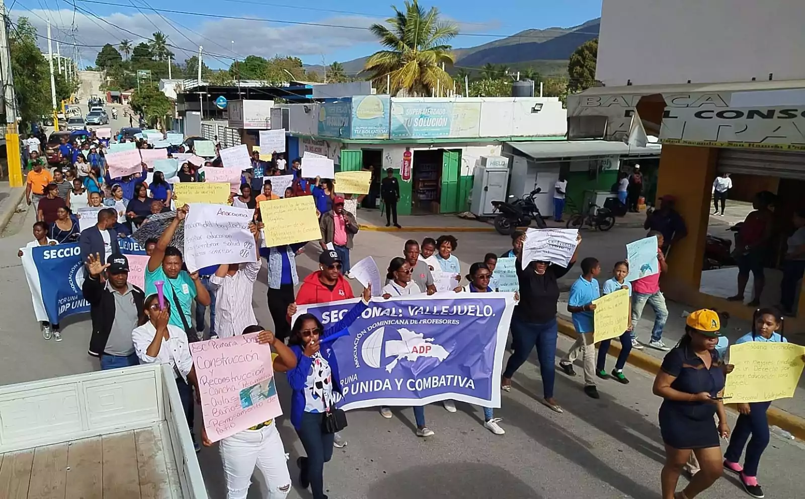 Directivos de la Asociación Dominicana de Profesores (ADP) junto a los representantes de las Unidades de Bases Sindicales y Pedagógicas, y de la Asociación de Padres, Madres, Tutores y Amigos de la Escuela (APMAE) del municipio de Vallejuelo realizaron una marcha, este jueves, por los problemas que aquejan a diversos centros educativos.