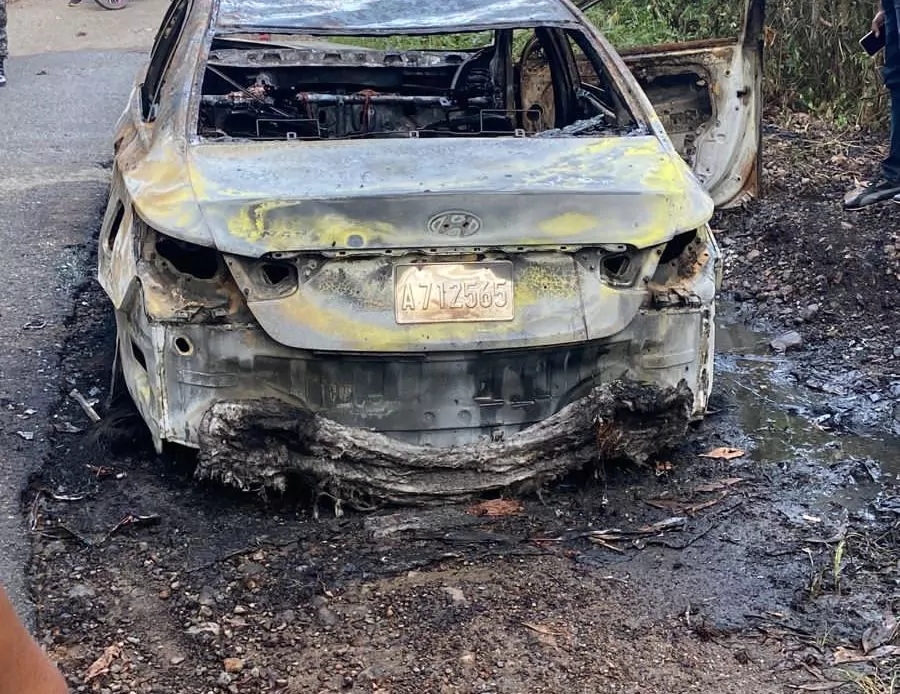 Dos personas fueron encontradas calcinadas en el interior de un vehículo marca Hyundai Sonata en Loma Miranda, Bonao, a unos 300 metros de la autopista Duarte.