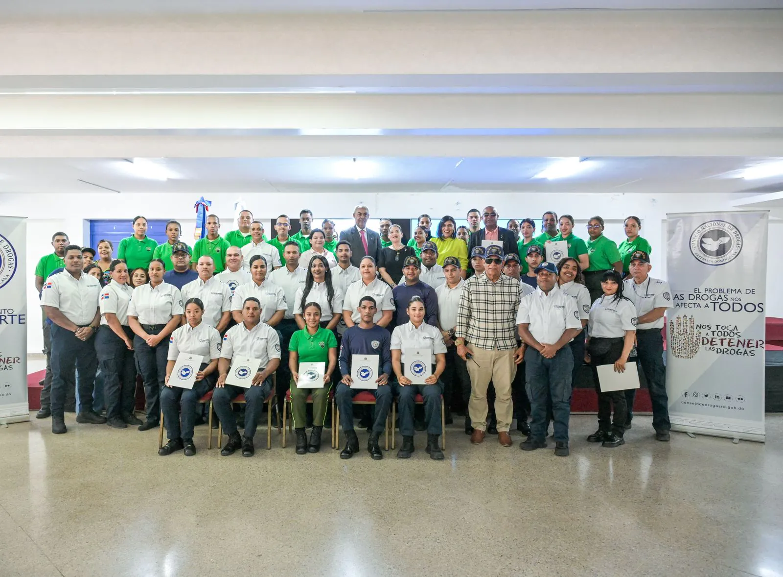 Decenas de policías municipales y auxiliares del ayuntamiento de Santiago recibieron certificados de participación por haber culminado satisfactoriamente el taller “Prevención del uso de sustancias psicoactivas y dispositivos electrónicos asociados”, un proceso formativo desarrollado en coordinación entre la Dirección de Recursos Humanos del cabildo y el Consejo Nacional de Drogas (CND), a través de su Departamento Regional (IV) Cibao Norte.