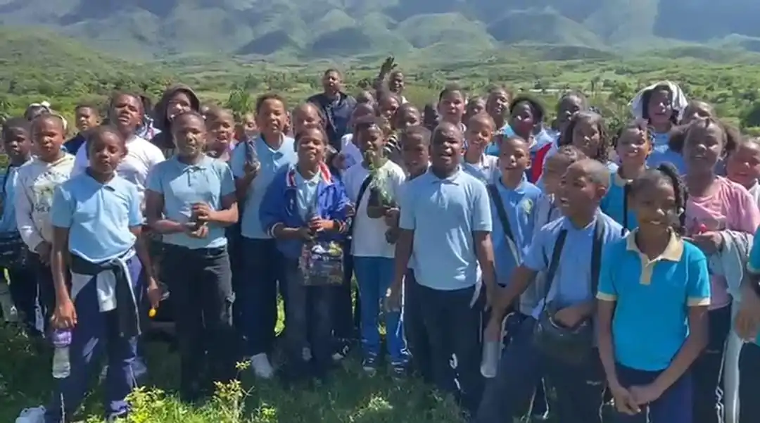 La Escuela Primaria Anacaona, en coordinación con el Ministerio de Medio Ambiente, realizó este jueves 8 de mayo una jornada de reforestación en las riberas del río Los Bao, con el objetivo de contribuir a la preservación del ecosistema local.