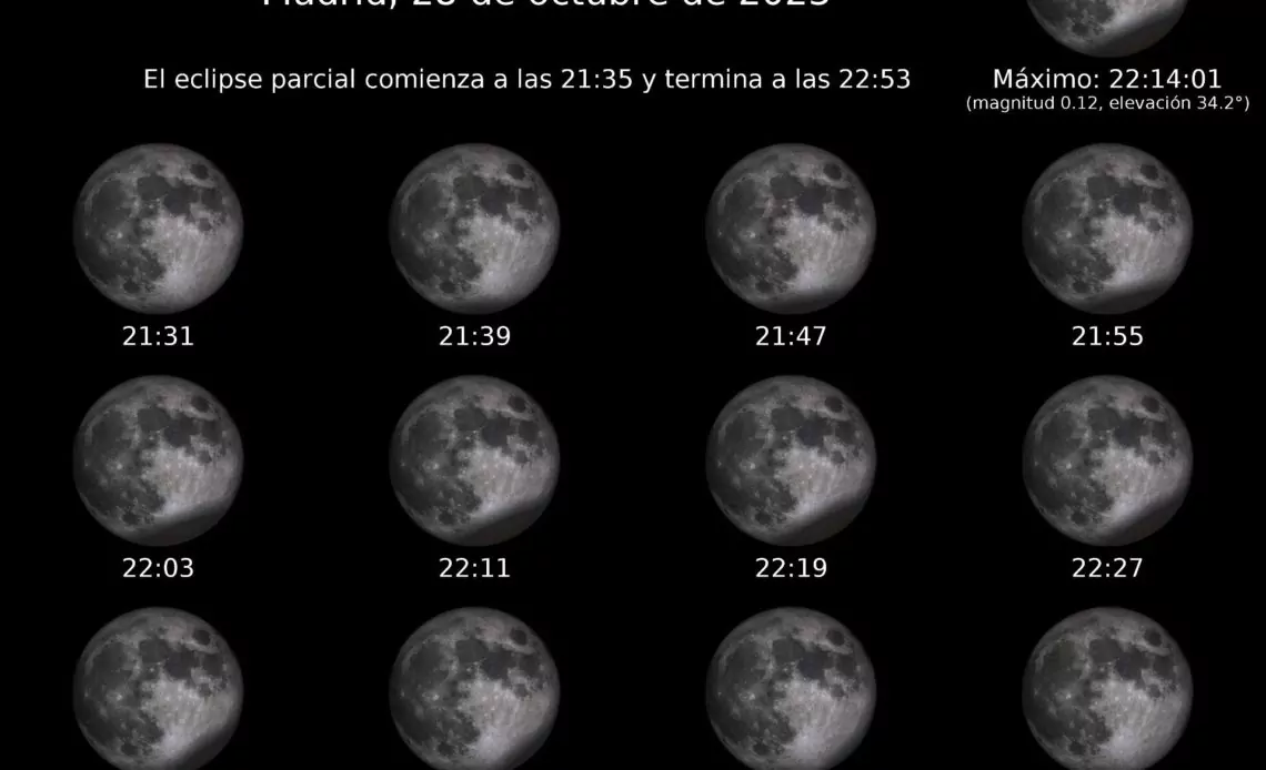 El eclipse de Luna de mañana será “modesto” (de magnitud 0,12) ya que “solo se verá una pequeña muesca oscurecida en un extremo sur de la Luna, el grado de oscurecimiento será muy escaso”, ha explicado a EFE, el astrónomo del OAN Miguel Querejeta.