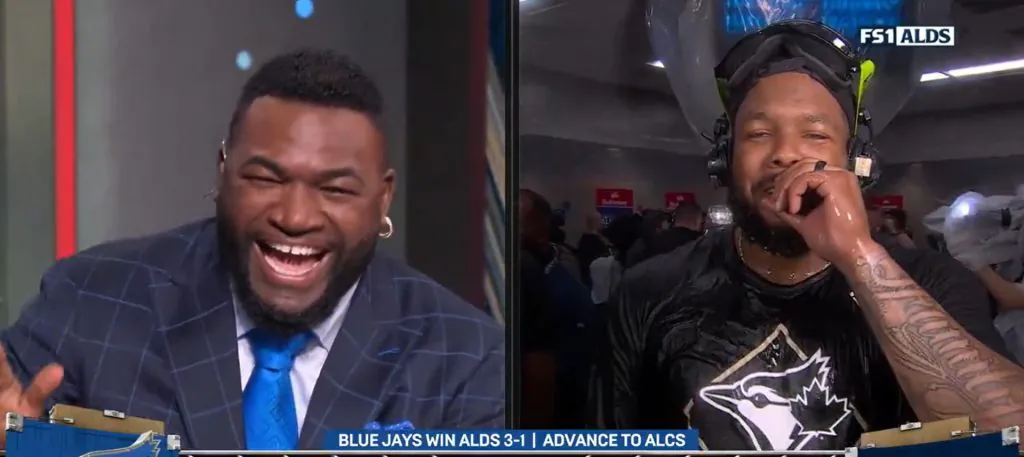 Durante la transmisión de Fox Sports, Ortiz, leyenda de los Medias Rojas de Boston, preguntó a Guerrero cómo se sentía tras vencer al histórico rival. Entre risas, el inicialista respondió: “You know what time it is”, antes de repetir junto al “Big Papi” la icónica frase del comentarista John Sterling.