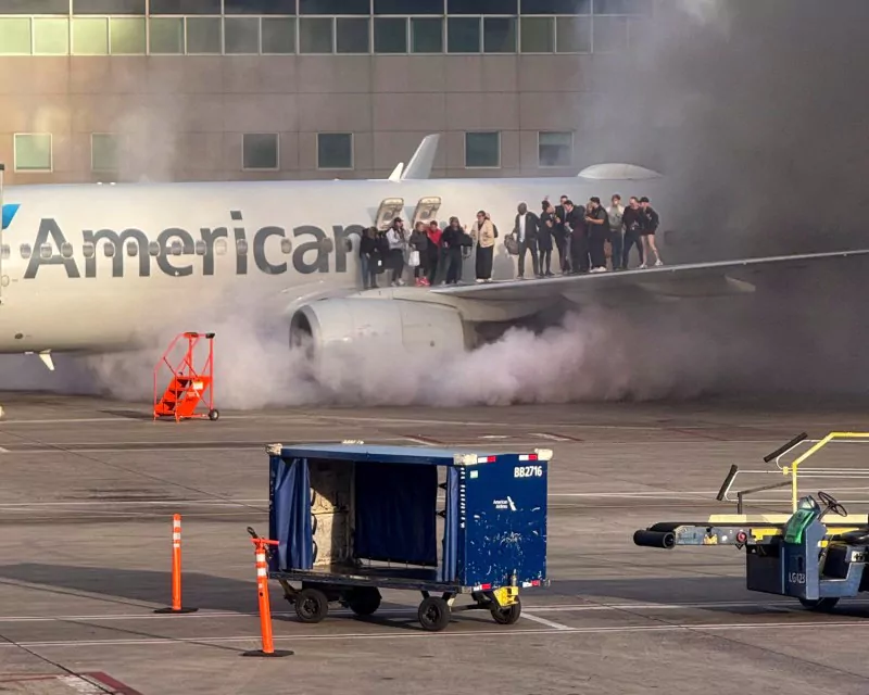 Evacúan avión de American Airlines que se incendió en Denver, EE.UU.