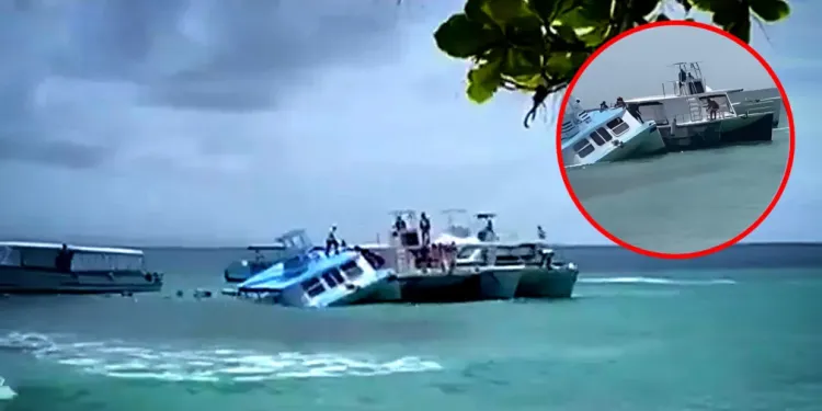 Una embarcación con varios turistas a bordo zozobró este lunes, cerca de la costa de Cayo Levantado, en Samaná.