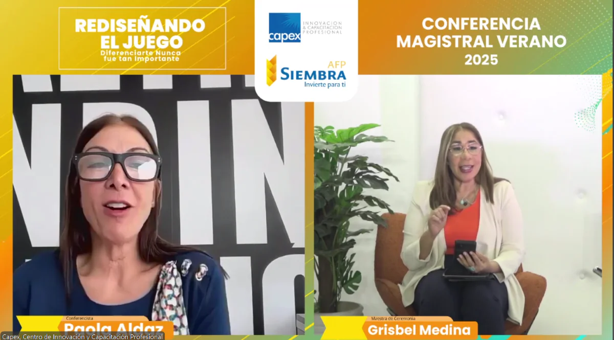 Utilizando recursos digitales para conectar desde la distancia, el Centro de Innovación y Capacitación Profesional Capex realizó con éxito la Conferencia Magistral Verano 2025: “Rediseñando el Juego: Diferenciarte nunca fue tan importante”, con la participación de la experta en marketing exponencial argentina, Paola Aldaz Biere.