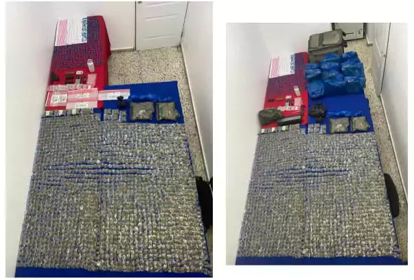 Durante la intervención en el centro de acopio, los oficiales y fiscales de los organismos participantes se ocuparon de 72.74 libras de marihuana, 529 porciones de cocaína, 481 pastillas de éxtasis y otros 17 sobres de la metanfetamina denominada Moli, además de la suma de  $3,340 pesos.