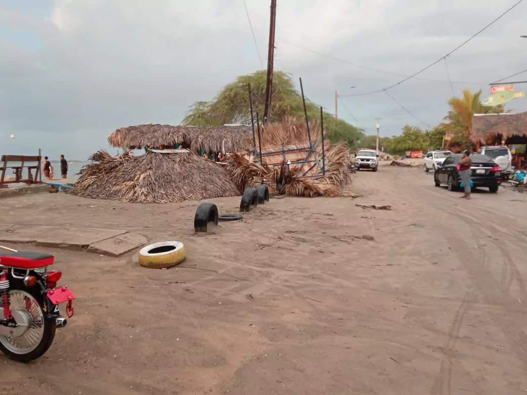 Los fuertes vientos acompañado de lluvias y descargas eléctricas, afectaron una gran parte de las casetas que funcionan como establecimientos comerciales en la playa «Los Coquitos» de Manzanillo.