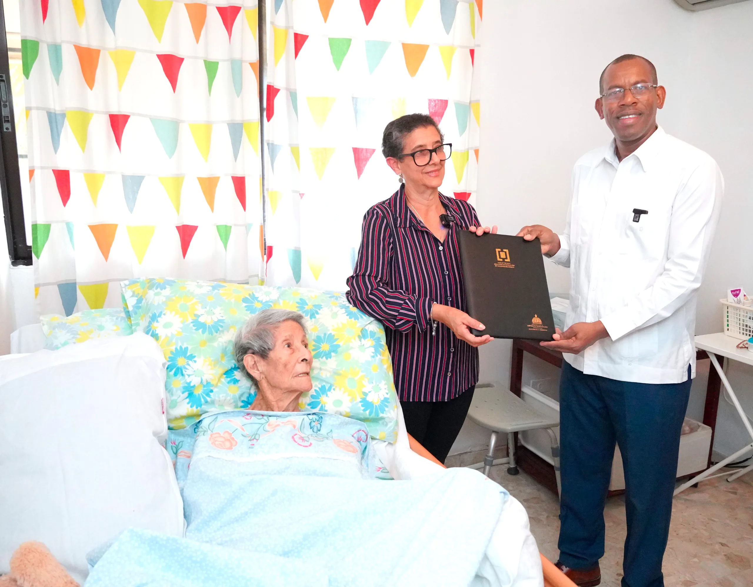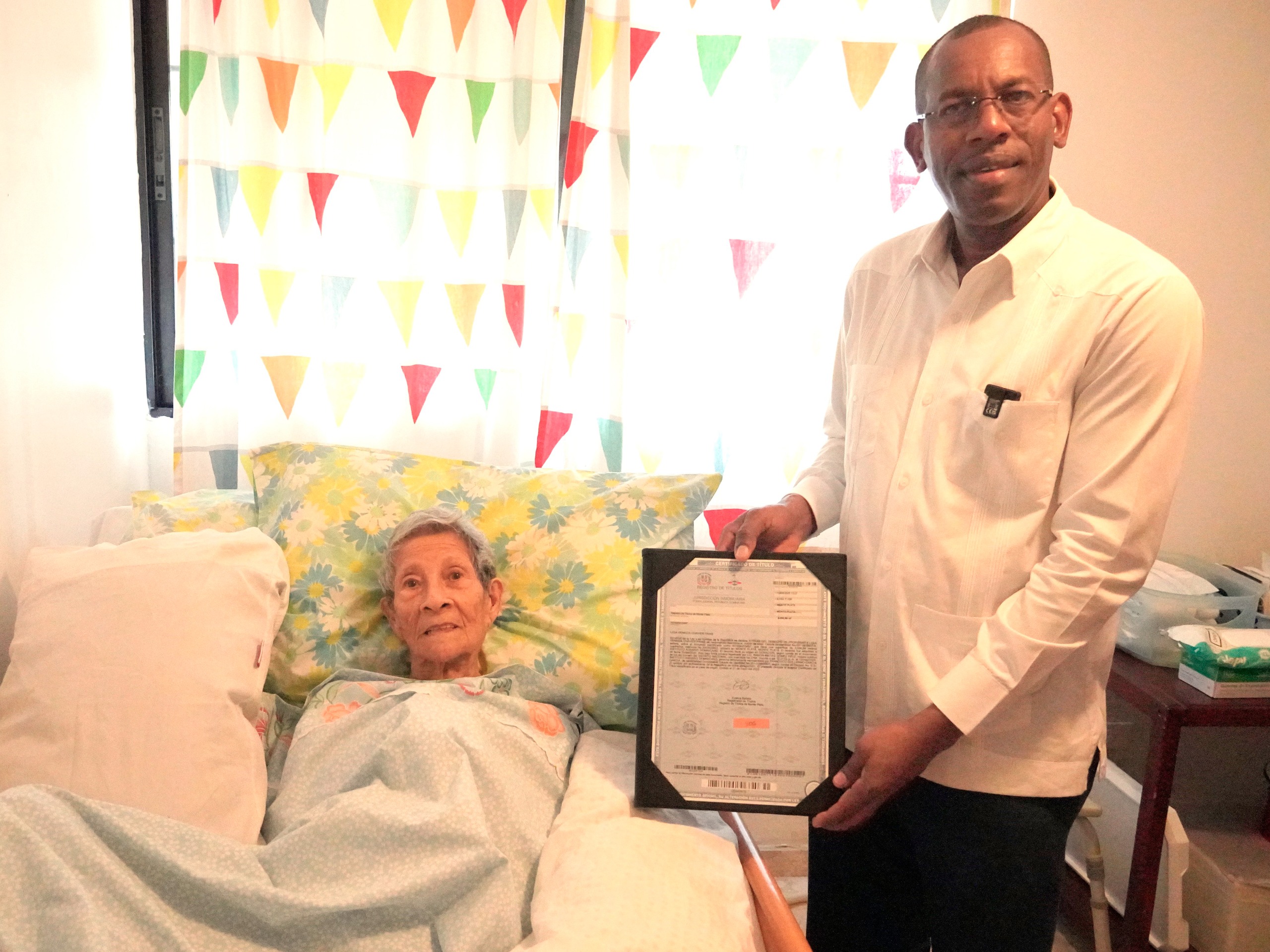 «Hoy estamos aquí en la casa de doña Ligia y hemos venido a entregarle el título de propiedad. Ella tiene 99 años y no le es fácil trasladarse, así que, dándole continuidad a este programa, hemos venido aquí para entregarle su título de propiedad, para satisfacción de ella y de su familia», indicó Méndez Peña.