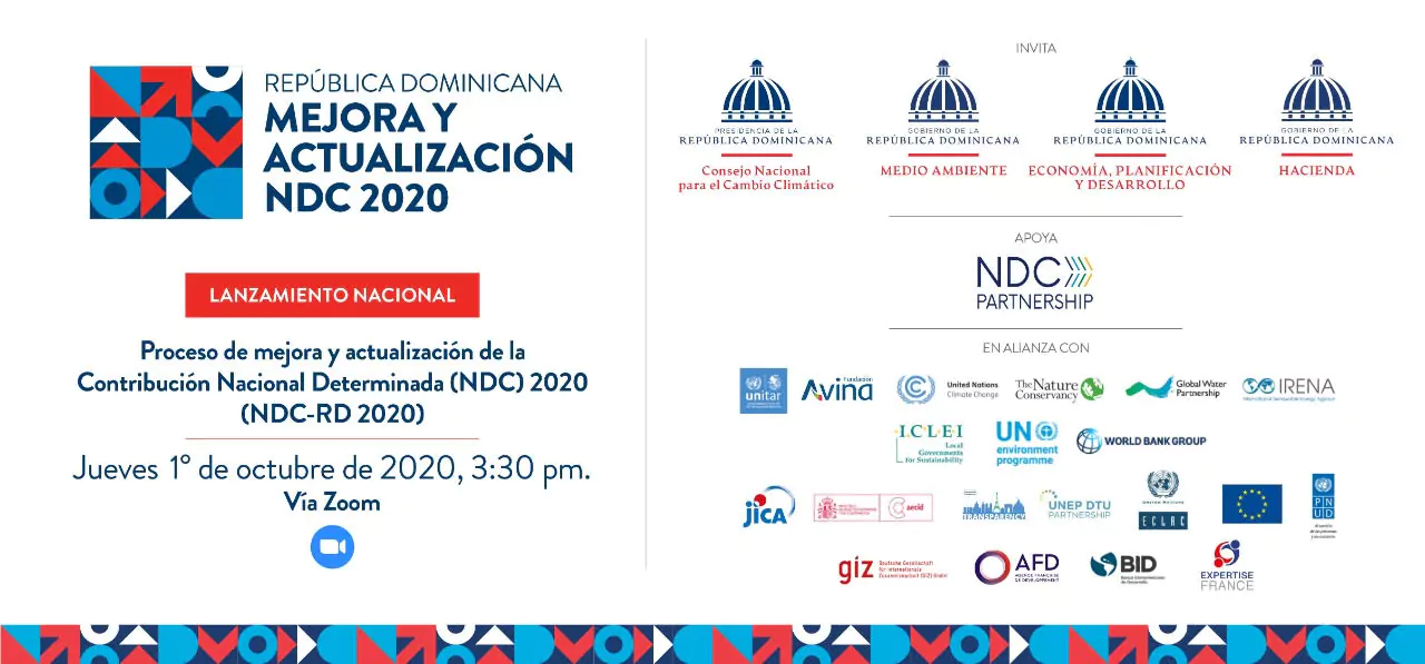 El Ministerio de Economía, Planificación y Desarrollo (MEPyD), el Ministerio de Hacienda, el Ministerio de Medio Ambiente y Recursos Naturales, bajo la coordinación de el Consejo Nacional para el Cambio Climático y Mecanismo de Desarrollo Limpio (CNCCMDL), realizarán este jueves 1 de octubre a las 3:30 PM, el evento virtual titulado “República Dominicana Mejora y Actualización NDC 2020”.
