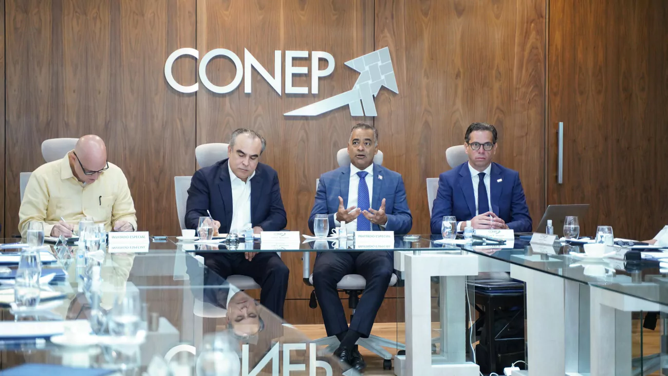 Los ministros de la Presidencia, Joel Santos Echavarría, y de Economía, Planificación y Desarrollo, Pável Isa, junto con el director ejecutivo del Consejo Nacional de Competitividad, Peter Prazmowski, presentaron a la junta directiva del Consejo Nacional de la Empresa Privada (Conep), el plan Meta RD 2036 y las acciones que desarrollará el Gobierno con miras a duplicar el Producto Interno Bruto (PIB).