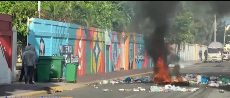 Un grupo de jóvenes se enfrentó a pedradas y bombas lacrimógenas con oficiales de la Policía Nacional frente al liceo-politécnico Manuel María Castillo, en el sector El Capacito de San Francisco de Macorís.