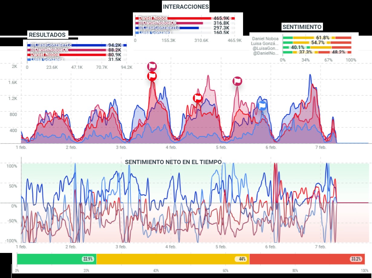 Proyección: La clave para ambos candidatos estará en movilizar a los indecisos y gestionar los momentos críticos en el calendario electoral. Los eventos del 4 y 6 de febrero demostraron que los picos de interacción coinciden con hitos importantes. Repetir esta estrategia será crucial.
