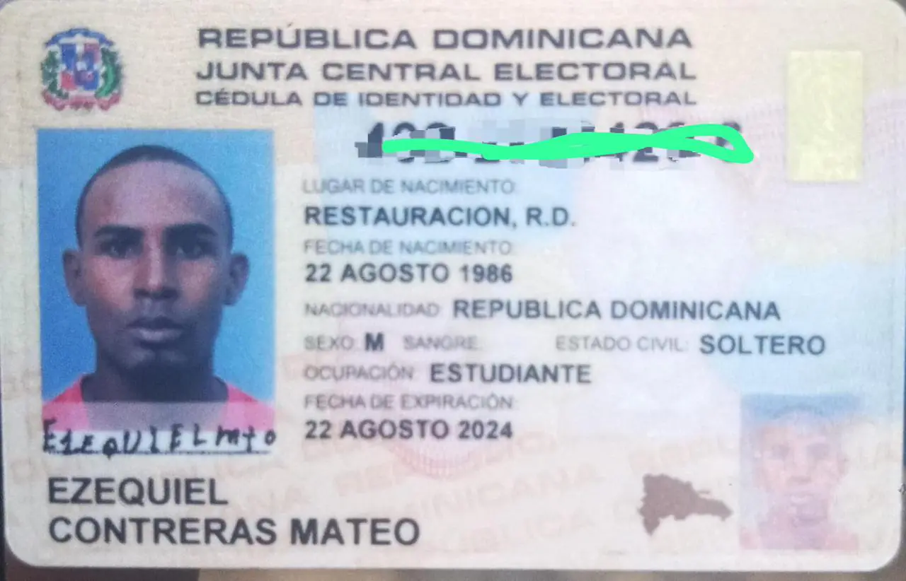 La víctima fue identificada como Ezequiel Contreras Mateo, conocido como Ambiorix, de nacionalidad dominicana, de aproximadamente 39 años de edad, residente en el sector Los Cerezos del municipio de Restauración.