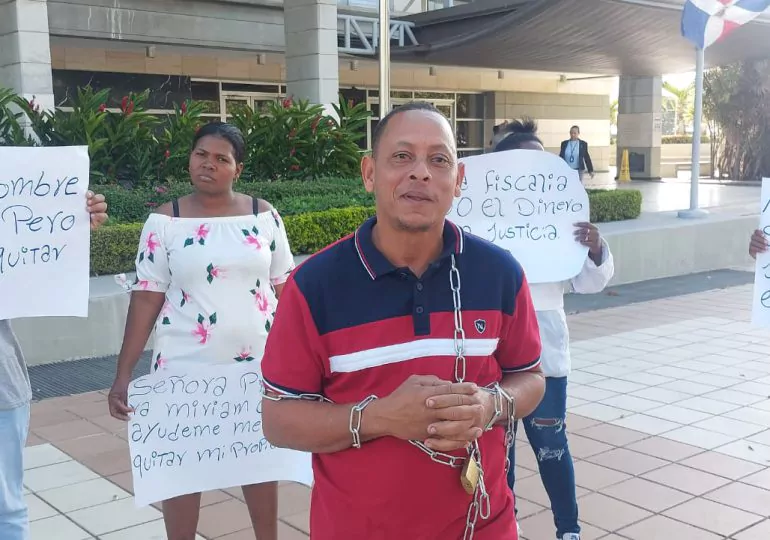 Ángel Davis Pimentel se encadenó frente a la Procuraduría General de la República, para exigir la intervención de la procuradora Miriam Germán, por supuesta persecución en su contra.