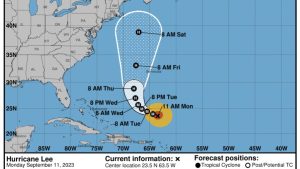 Este lunes los vientos de Lee, de categoría 3, se extienden a unos 195 kilómetros por hora y se irá desplazando hacia «el nor-noroeste y luego a un norte franco» a unos 120 kilómetros por hora. La entidad estima que el fenómeno continúe con este movimiento de manera sostenida.