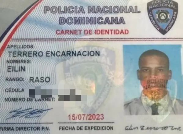 El fallecido fue identificado como Eilin Terrero Encarnación, de 22 años de edad, quien estaba adscrito a la Policía Preventiva en la provincia de Barahona. El joven agente presentaba una herida de proyectil por arma de fuego en la región frontal del cráneo, según el diagnóstico del médico legista, Dr. Gregorio Fulcar Beriguete.