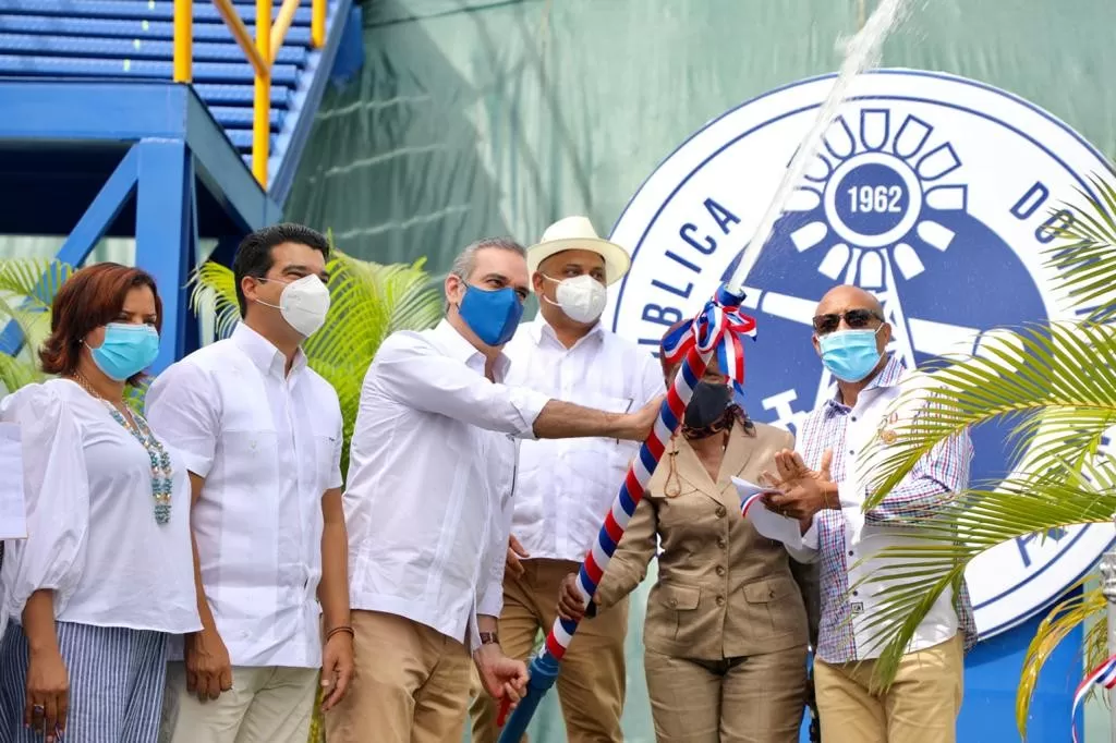 El presidente Luis Abinader y Wellington Arnaud, director ejecutivo del Instituto Nacional de Aguas Potables y Alcantarillados (INAPA), inauguraron el Acueducto Múltiple Guanuma-Los Botados, provincia Monte Plata, que garantizará el servicio de agua, en cantidad, calidad y presión, a los residentes de la demarcación.