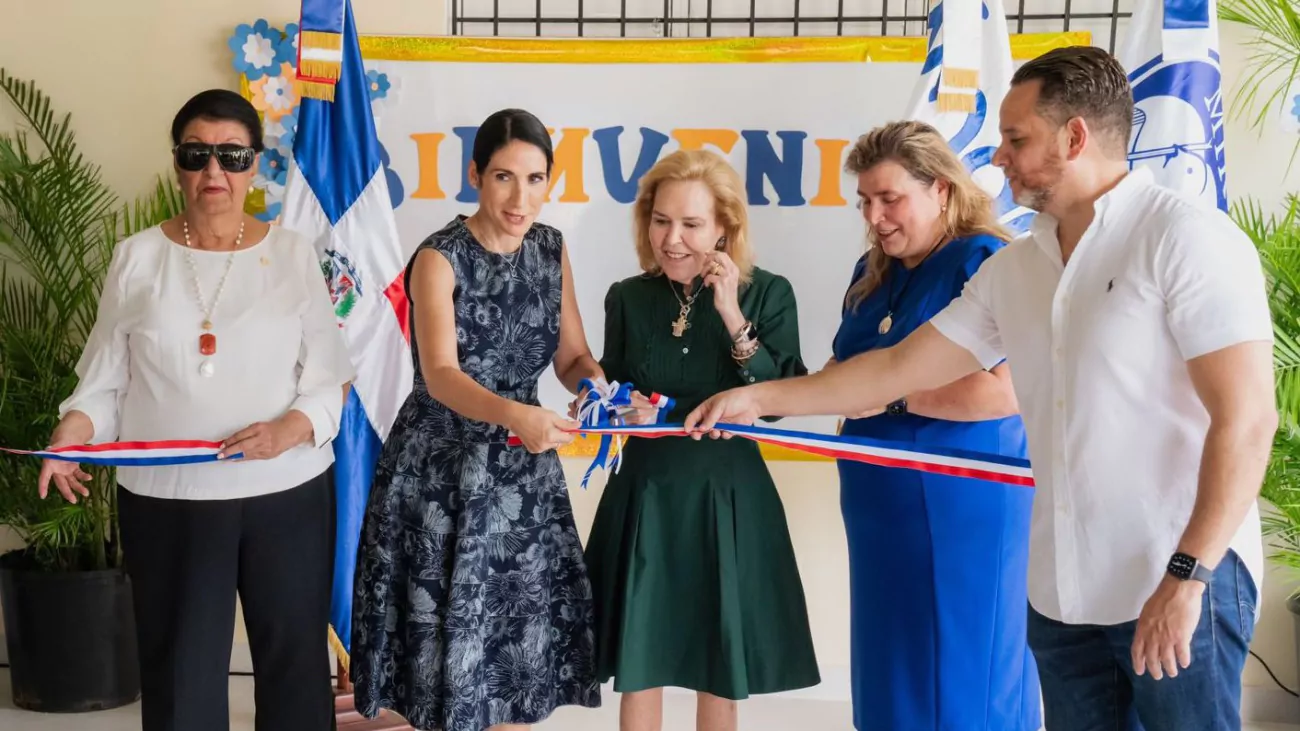 La primera dama Raquel Arbaje, presidenta honorífica del Gabinete, junto con Besaida Manola Santana, directora ejecutiva del INAIPI, y las señoras Lian Fanjul y Lyanne Azqueta Fanjul, encabezaron el acto de inauguración del nuevo CAIPI, que cuenta con cuatro salas para ofrecer los servicios a los niños y las niñas, bajo el modelo del INAIPI.