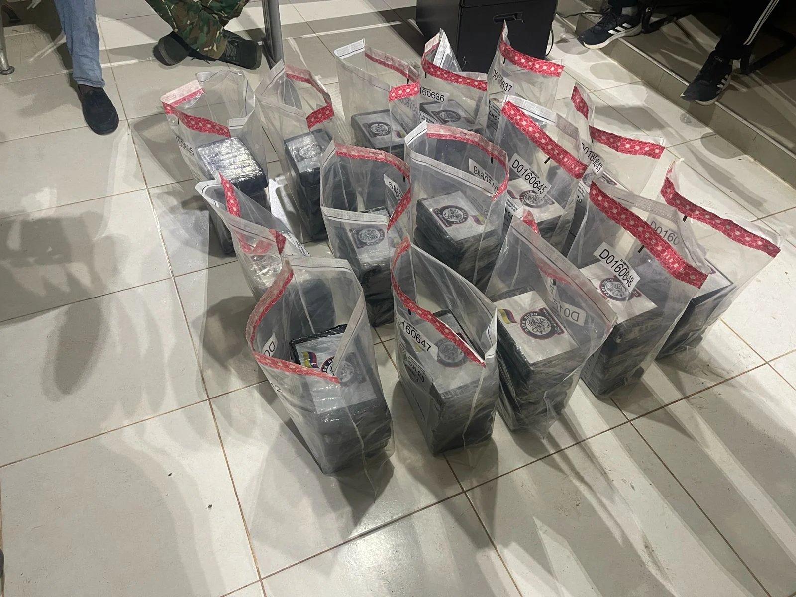 Las autoridades ocuparon además un Gps, una radio de comunicación y otras evidencias que ayudarán a fortalecer las investigaciones en torno a la frustrada operación de narcotráfico internacional.