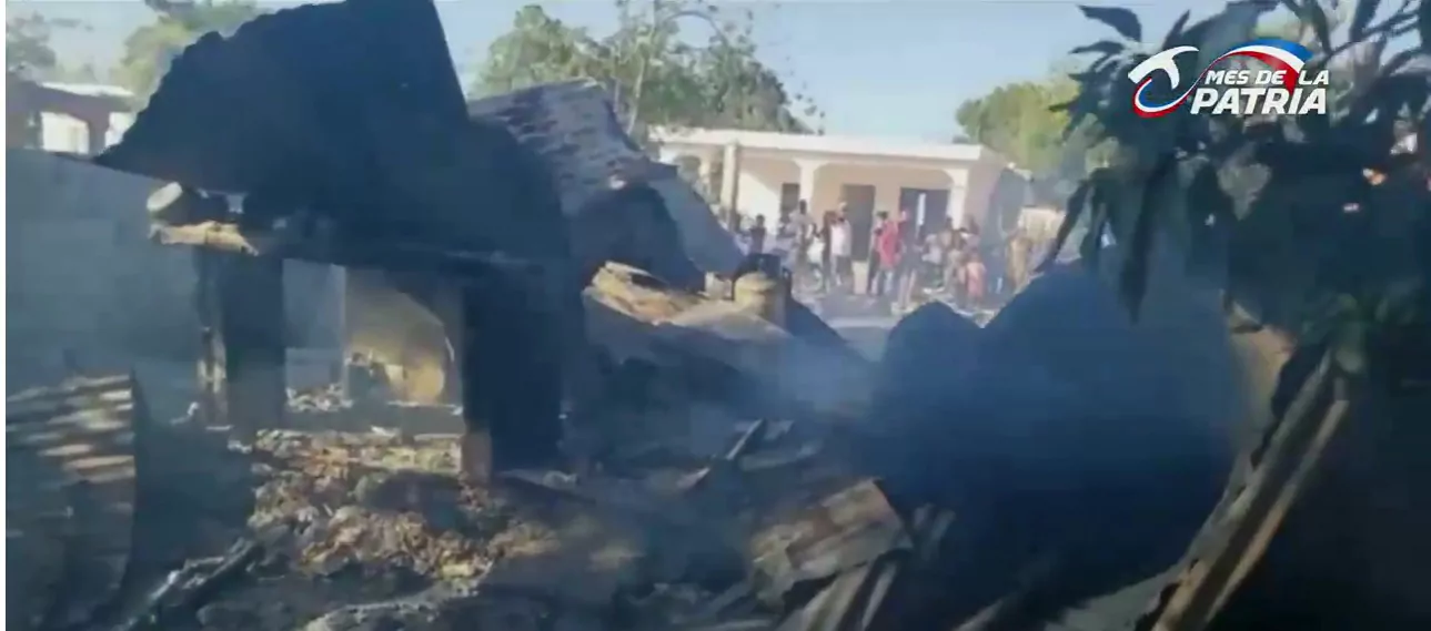 Destruida por completo quedó una vivienda, tras ser afectada por un voraz incendio, la tarde del lunes, en el distrito municipal Cristo Rey de Guaraguao, en Villa Riva.