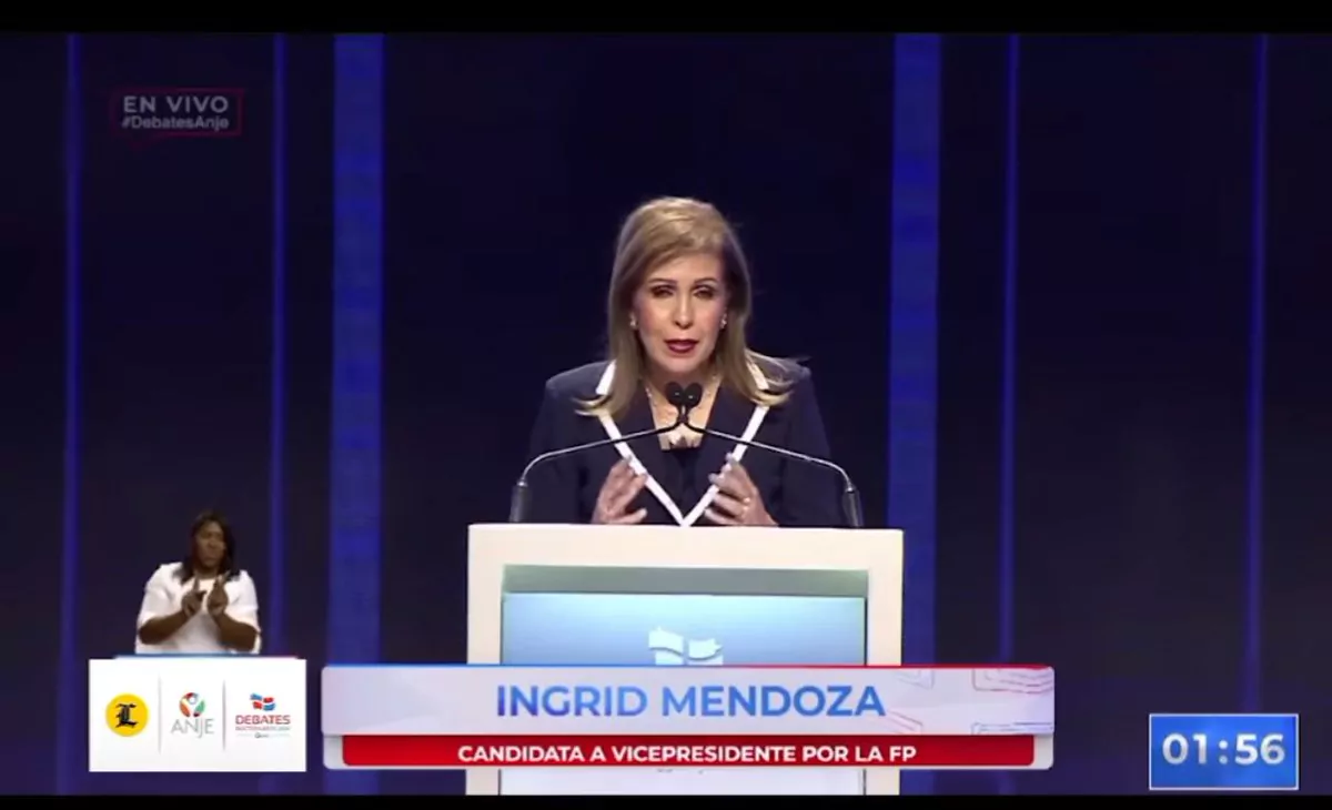 Mendoza respondió a la primera pregunta del debate vicepresidencial diciendo: «La migración, cuando se da de manera ordenada y organizada beneficia a los pueblos, pero cuando se da sin planificación como ha venido sucediendo en nuestro país, puede poner en peligro la soberanía nacional y la seguridad».