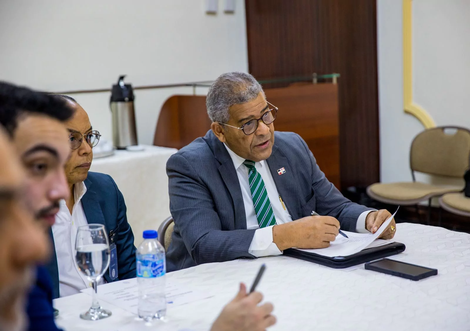 También Gian Lucas Marra, por el Ministerio de Hacienda; Manuel Robles, por el Ministerio de Economía, Planificación y Desarrollo; Adagel Grullón, por el Consejo Nacional de Competitividad; Emmanuel Santiago, por la Consultoría Jurídica del Poder Ejecutivo; y como invitado, Rubén Estrella, por la Contraloría General de la República.