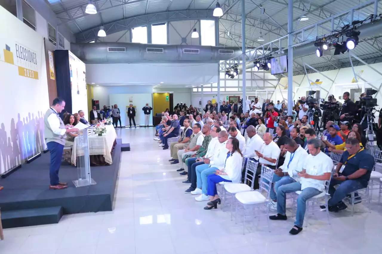 El presidente de la JCE, Román Jáquez Liranzo, en compañía de los miembros titulares del Pleno Rafael Armando Vallejo Santelises, Dolores Fernández, Patricia Lorenzo Paniagua, Samir Chami Isa y el secretario general Sonne Beltré, el cuerpo directivo, autoridades de la Policía Militar Electoral e invitados internacionales, informó que oportunamente, en el plazo que prevé la ley, serán dados a conocer los resultados definitivos de este proceso a través de resolución del Pleno, declarando a los candidatos y candidatas oficiales para las elecciones de 2024.