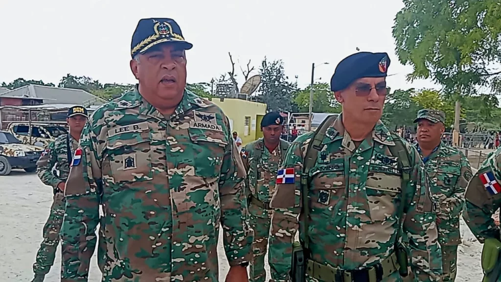 El comandante general del Ejército, mayor general Jorge Iván Camino Pérez, y el director general de Migración, vicealmirante Luis Rafael Lee Ballester, recorrieron los puntos fronterizos de Pedernales, Elías Piña, Jimaní y Dajabón, con el objetivo de consolidar estrategias para fortalecer las acciones conjuntas de ambas instituciones, enfocadas en enfrentar el tráfico de indocumentados y otros ilícitos.