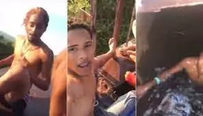 Un grupo de jóvenes utiliza como piscina el tanque de almacenamiento de agua potable ubicado sobre las montañas del Parque Nacional Los Haitises, en el distrito municipal Cristo Rey de Guaraguao, en Villa Riva.