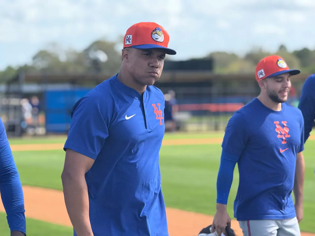 En su primer día, de los 15 años que se espera juegue para los Mets, Soto realizó varios ejercicios, conversó con sus compañeros y mostró algo de su poder con el madero en la caja de bateo ante la mirada de cientos de aficionados que esperaron por su llegada.