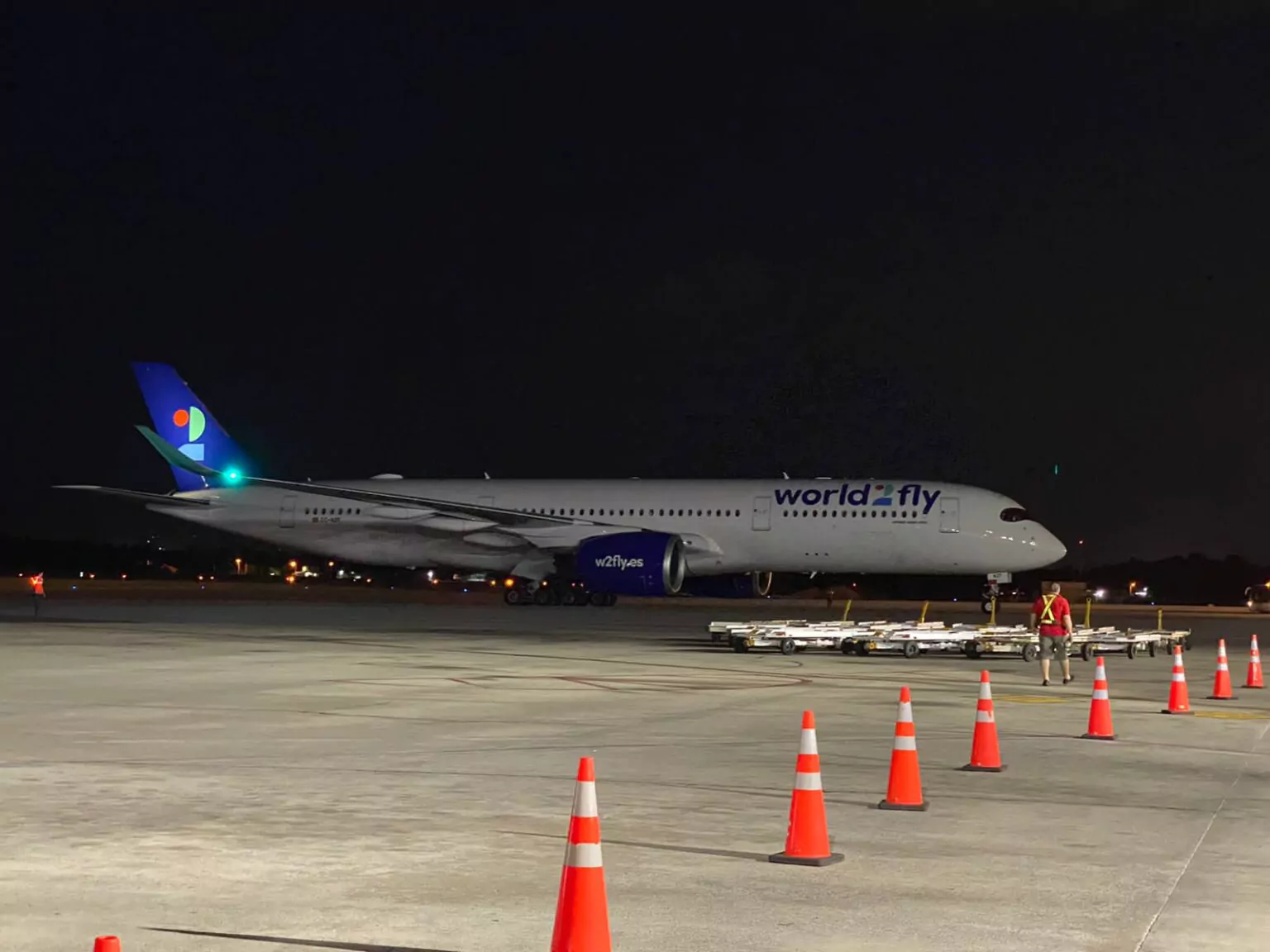 Arribó este miércoles por el Aeropuerto internacional del Cibao el primer vuelo directo de World2Fly, aerolínea del Grupo World2Meet, que acaba de estrenar la ruta directa que une Madrid con Santiago de los Caballeros en República Dominicana. operado con un A350, ha registrado un factor de ocupación de 413 pasajeros y 10 miembros de la tripulación.