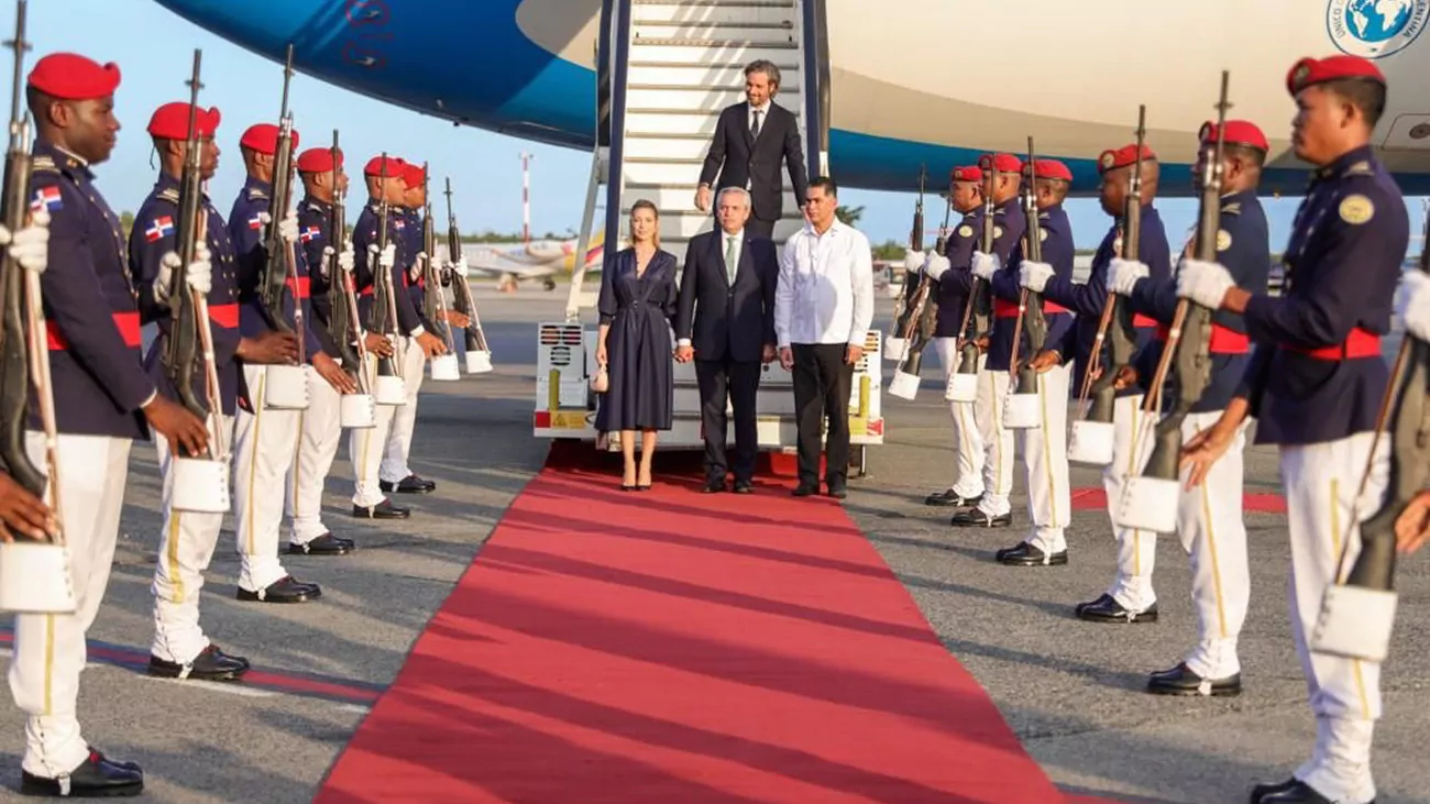 Luego, pasadas las 5:45 de la tarde, arribó al país el presidente de Argentina, Alberto Fernández, acompañado de su esposa, la primera dama Fabiola Yánez.