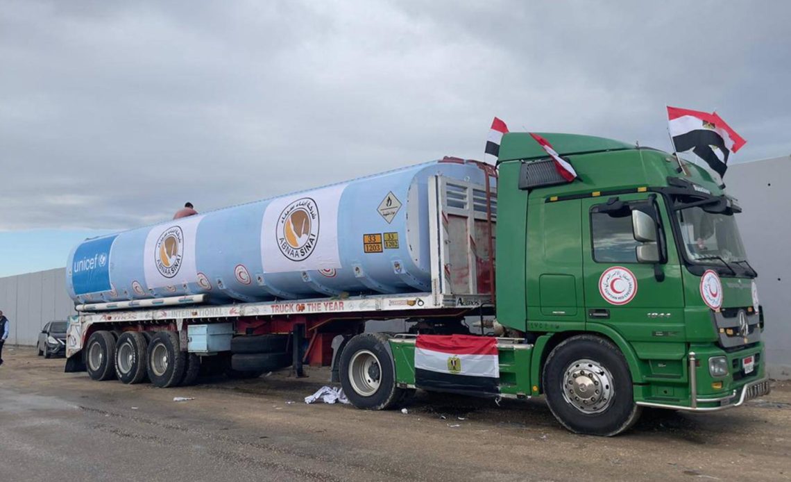 Las cadenas de televisión egipcias Al Qahera News y Extra News, próximas al Gobierno egipcio, afirmaron que “cerca de 150.000 litros de combustible ingresaron desde Rafah para hospitales de la Franja de Gaza”.
