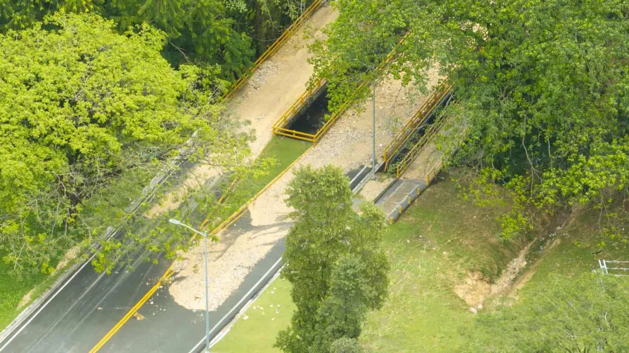 Imágenes suministradas a medios de prensa muestran el derrumbe de una pared que rodea la residencia de varios diplomáticos de la embajada, próximo a la avenida República de Colombia. También se observan residuos acumulados sobre un puente que cruza la parte trasera de la propiedad.