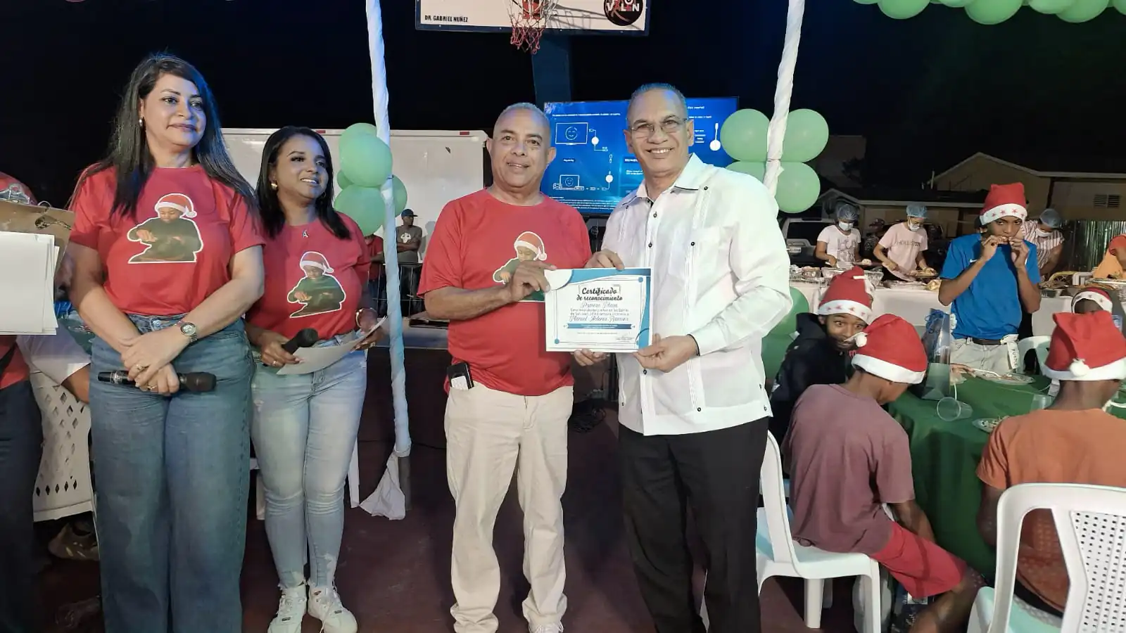 De igual manera, el magistrado Ramírez Suzaña recibió otro reconocimiento de manos del comunicador Jimmy Duval, durante la celebración de la trigésima cuarta cena de gala dedicada a los limpiabotas de la provincia de San Juan, evento que exalta la dignidad y el valor social de este sector.