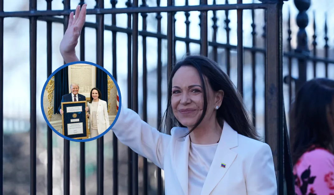 La líder opositora venezolana María Corina Machado entregó este jueves una placa de reconocimiento al presidente de Estados Unidos, Donald Trump, que tiene incluida la medalla del Premio Nobel de la Paz 2025, durante su visita a la Casa Blanca.