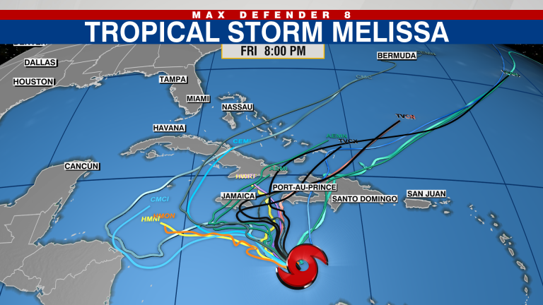 Ubicada a unas 305 millas al sur-suroeste de Puerto Príncipe, Haití, Melissa se mueve hacia el oeste-noroeste a aproximadamente 7 mph.