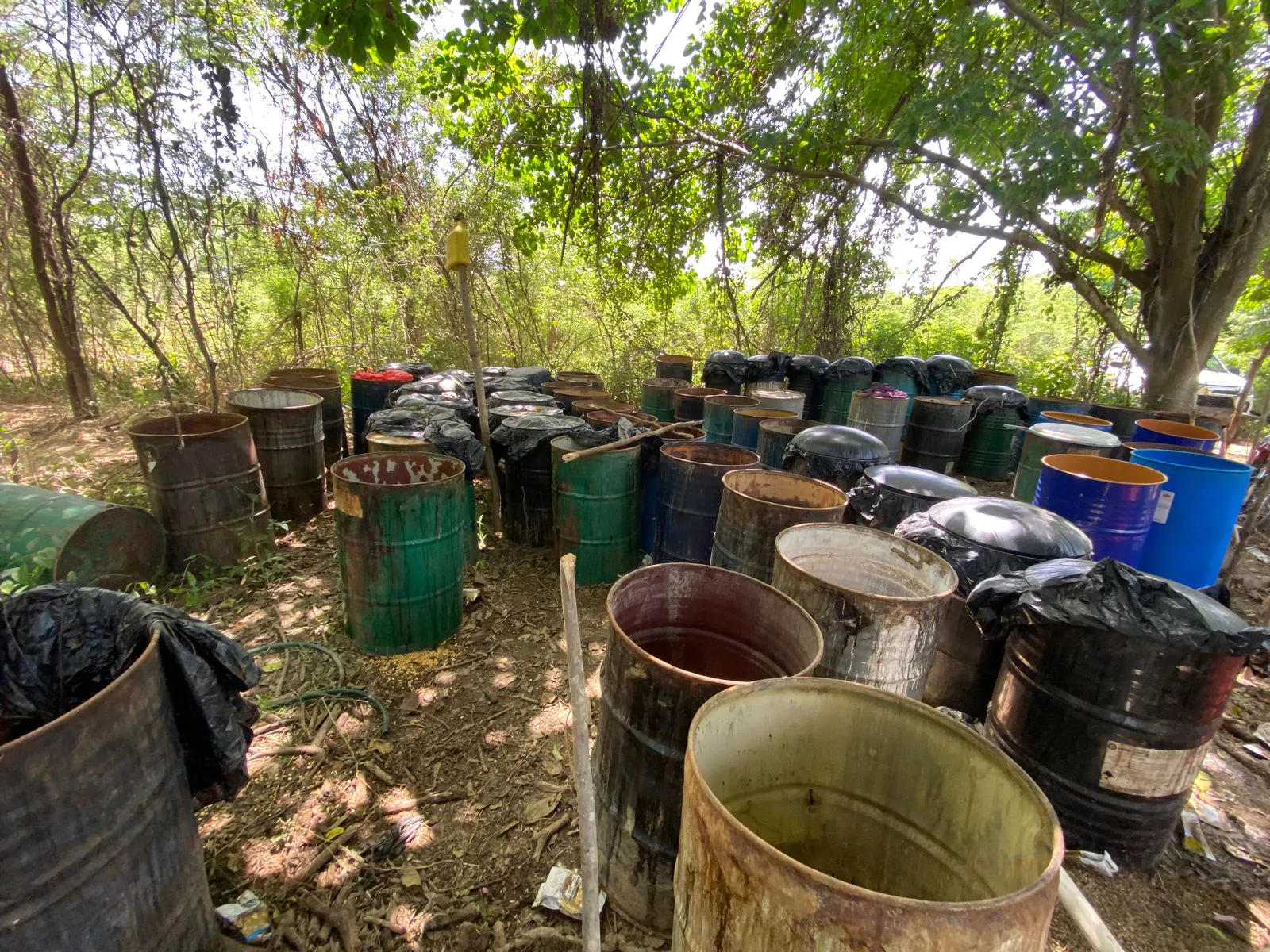 Durante la requisa, las autoridades incautaron más de 80 tanques de metal que contenían el líquido.
