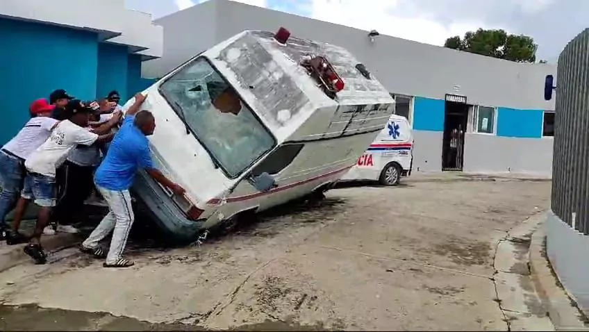 Familiares y amigos de un joven que falleció recientemente en esa localidad, tras sufrir un accidente y ser trasladado al hospital Ramón Adriano Villalona, en el municipio de Loma de Cabrera, protestaron airadamente, volteando la ambulancia y provocando destrozos en el lugar.