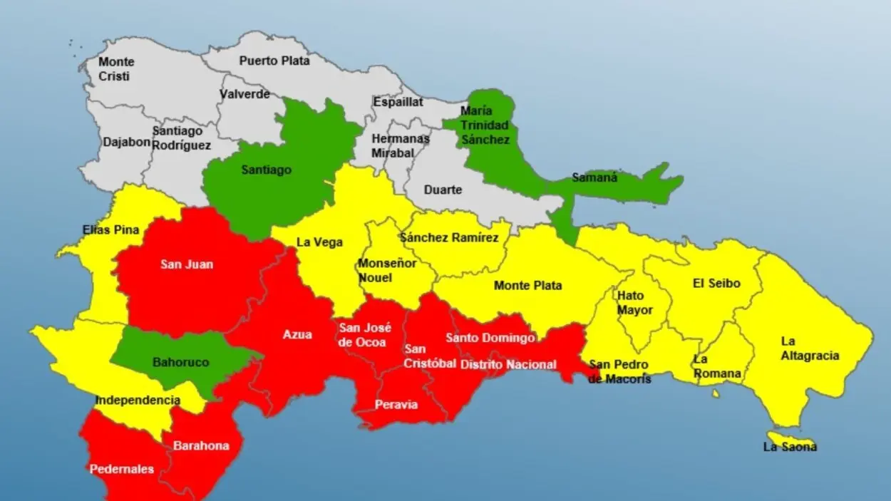 Mientras que en alerta verde se encuentran Bahoruco, Santiago, María Trinidad Sánchez y Samaná.