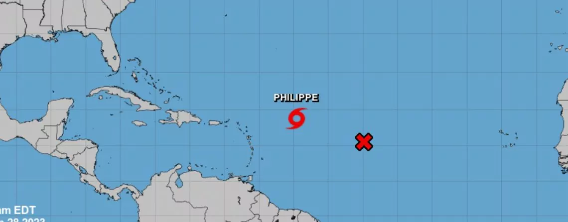 Además la ONAMET informó que sigue vigilando la evolución de la tormenta tropical Philippe, que se encuentra a más de 835 kilómetros al este de las Antillas Menores y se desplaza lentamente hacia el oeste/noroeste a una velocidad de 4 km/h.