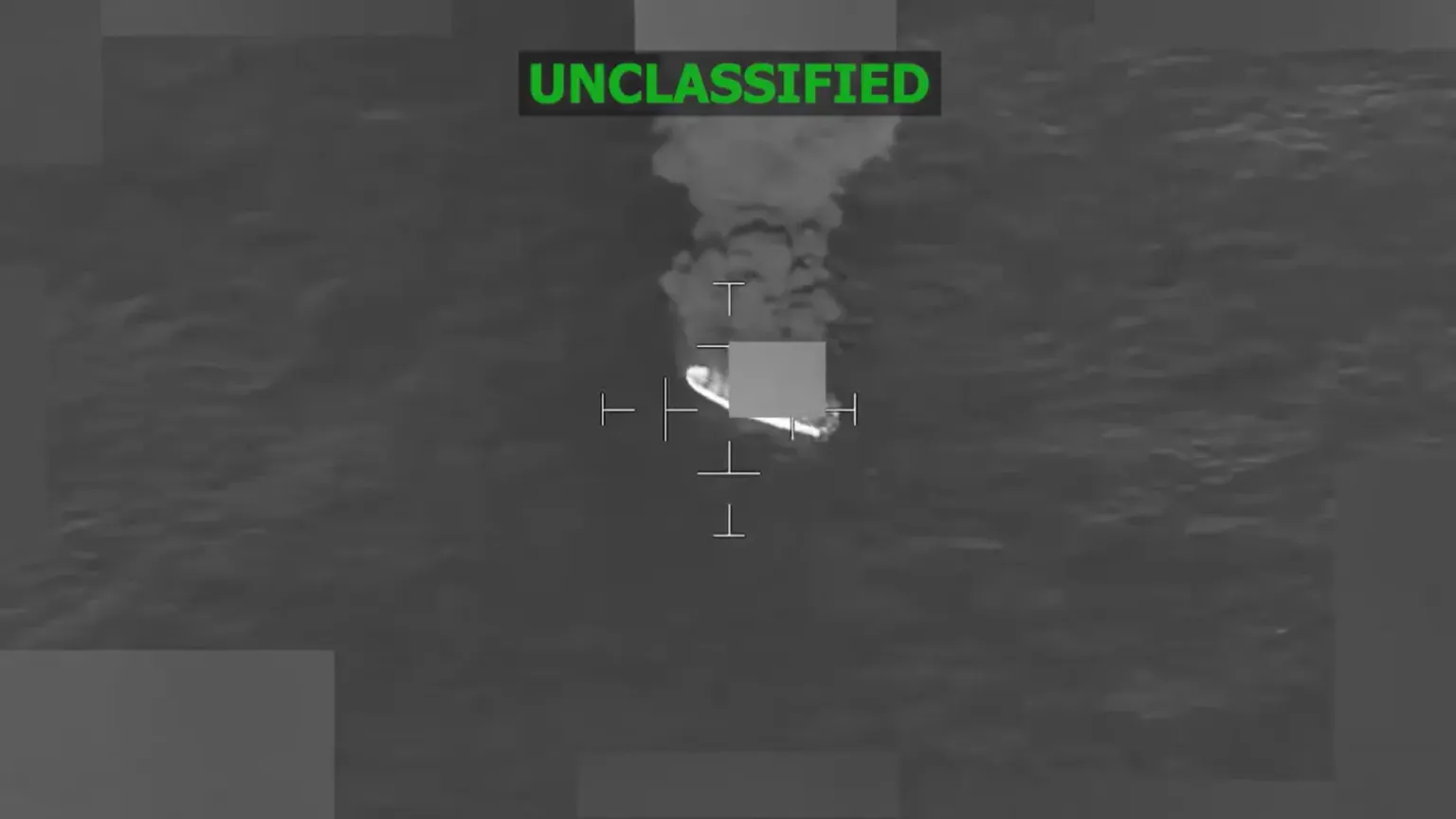 Las Fuerzas Armadas estadounidenses acompañaron la publicación del ataque con un video donde se observa a un buque en movimiento que resulta impactado.