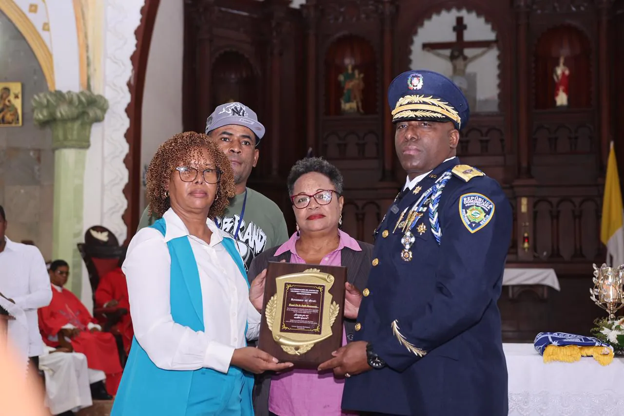 La Federación de Juntas de Vecinos y Organizaciones Comunitarias, dirigida por Leonor Ramírez, entregó una placa de reconocimiento al general de la Policía Frank de los Santos Encarnación, director regional Oeste de la institución para las provincias San Juan y Elías Piña.