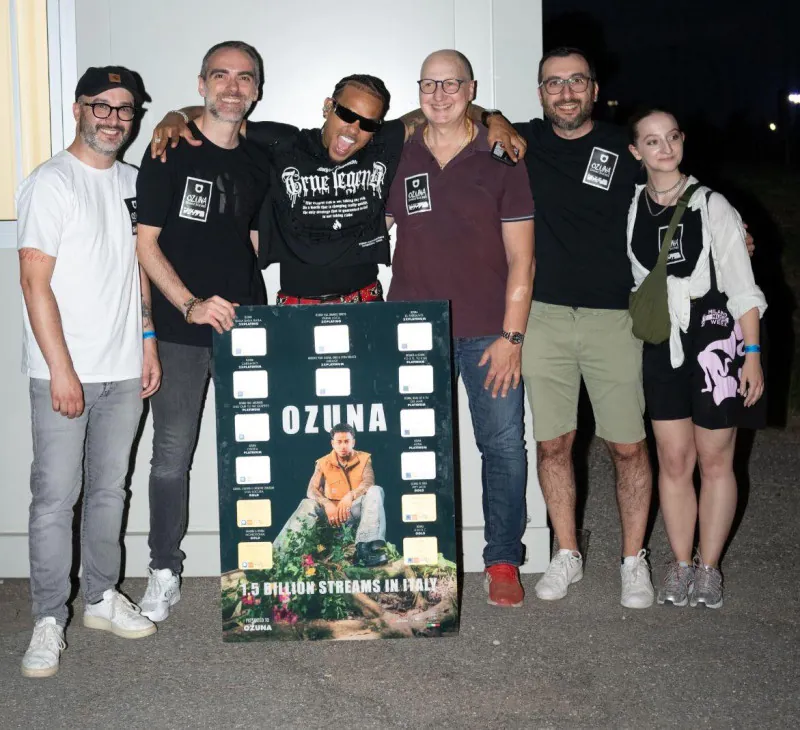 Antes de subir al escenario, Ozuna fue sorprendido con un disco conmemorativo por haber superado los 1.5 billones de streams en Italia, reafirmando su alcance internacional y el cariño del público italiano. El reconocimiento fue entregado por representantes de su sello discográfico y plataformas digitales, destacando su impacto en el mercado europeo.