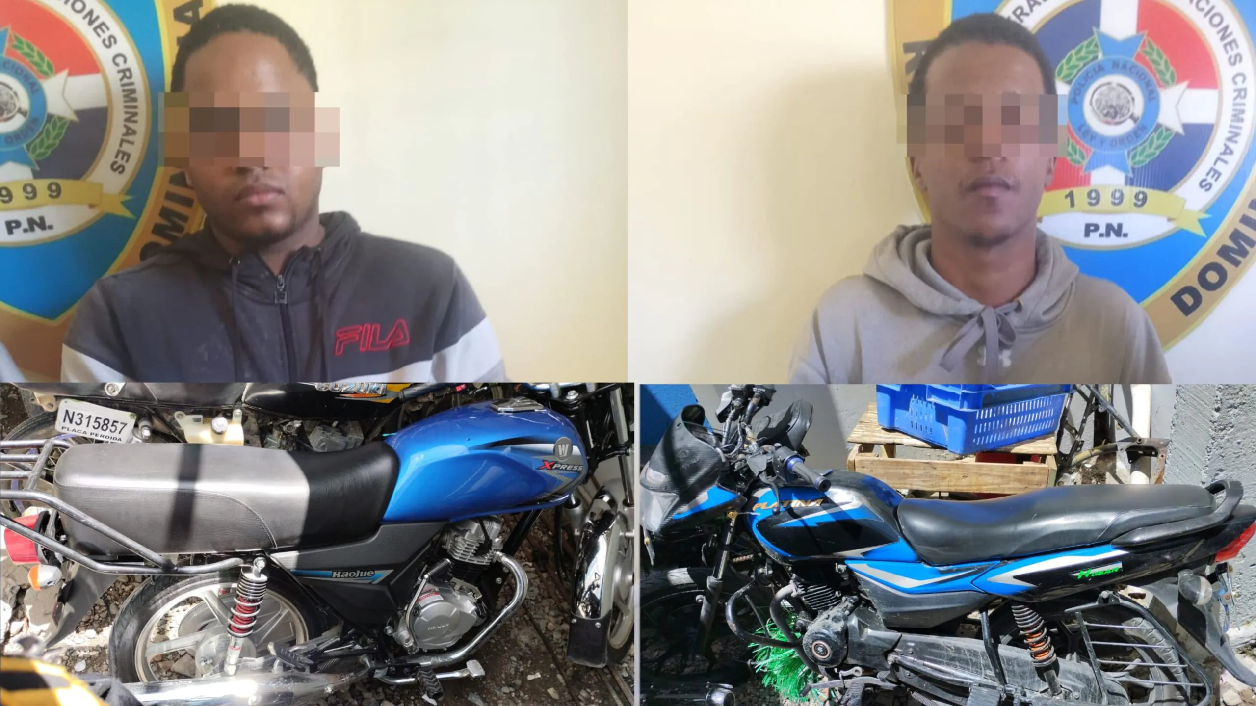 Dos hombres fueron arrestados por agentes de la Policía Preventiva, adscritos a la Dirección Regional Oeste, tras ser sorprendidos en posesión de dos motocicletas que figuraban como robadas en esta provincia.