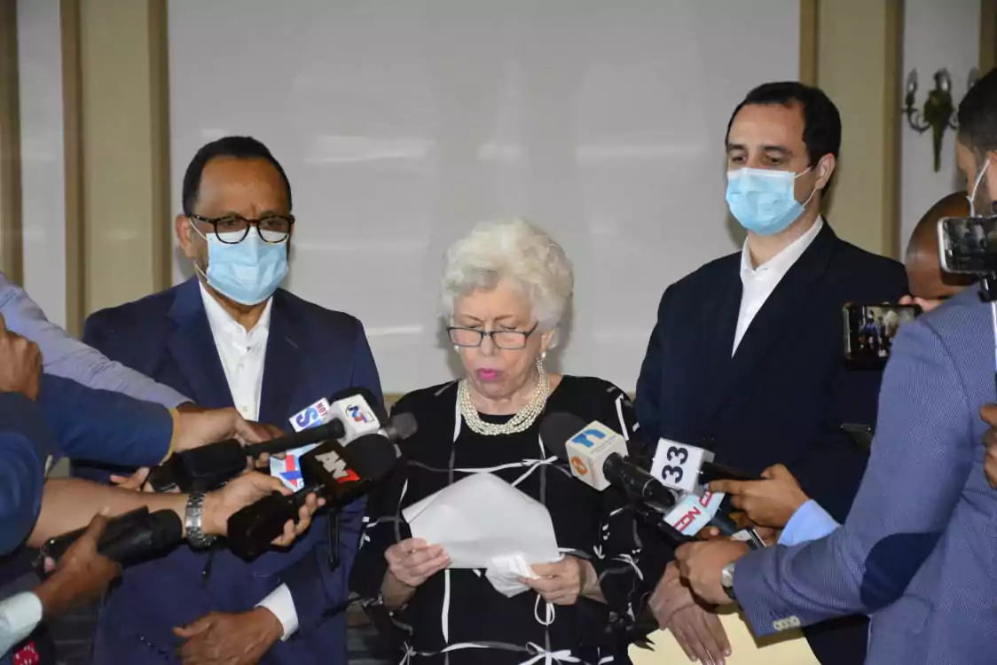 La funcionaria al ofrecer sus declaraciones estuvo acompañada del consultor Jurídico del Poder Ejecutivo, Antoliano Peralta Romero.